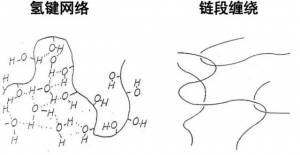 當(dāng)羥乙基纖維素增稠劑加入乳膠漆中,吸收大量水分,使其本身體積大幅度膨脹,減少了顏填料和乳膠粒子的自由活動(dòng)空間;同時(shí)羥乙基纖維素分子鏈互相纏繞形成立體網(wǎng)絡(luò)結(jié)構(gòu),顏填料和乳膠粒子被包圍在網(wǎng)眼中間,不能自由流動(dòng)。